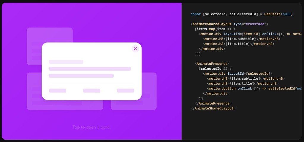 Moving and animated objects can make seemingly simple projects times more complex and time-consuming. React Motion tries to solve this problem, by offering a wide range of components from smooth-moving pop-ups to easily configurable user-movable items. All you have to do is set the animation parameters and all of the physics will be taken care of by React Motion itself.